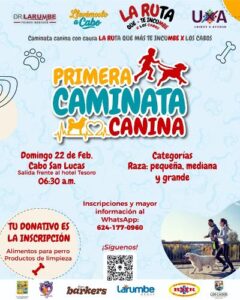 Mañana domingo 22 de febrero es la Primera Caminata Canina en Cabo San Lucas