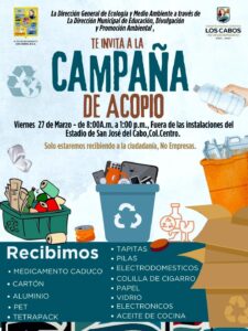 Este viernes, invitan a jornada de acopio de reciclables en San José del Cabo