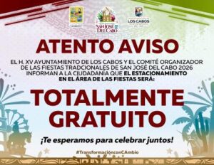 Determina el Comité Organizador que el estacionamiento de las Fiestas Tradicionales San José del Cabo 2026 es gratuito
