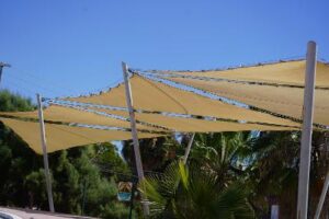 Rehabilitación de malla sombra en canchas anexas del auditorio Leonardo Gastélum en Cabo San Lucas