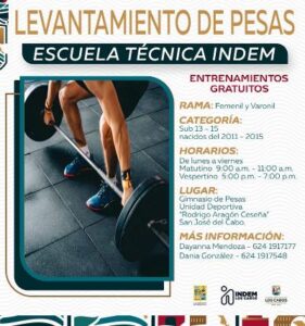 Abren inscripciones para Escuela Técnica de Levantamiento de Pesas en San José del Cabo