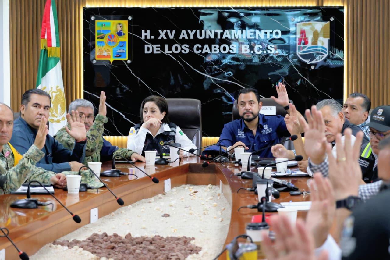 Los Cabos, Baja California Sur.– Con la presencia de la coordinadora nacional de Protección Civil, Laura Velázquez Alzúa, el gobernador de Baja California Sur, Víctor Manuel Castro Cosío, y el alcalde de Los Cabos, Christian Agúndez Gómez, se llevó a cabo la sesión del Consejo Estatal de Protección Civil, en la cual se acordó la reanudación de clases este jueves 9 de octubre en Los Cabos, luego de determinarse que el huracán “Priscilla” dejó de representar riesgo para la comunidad escolar.