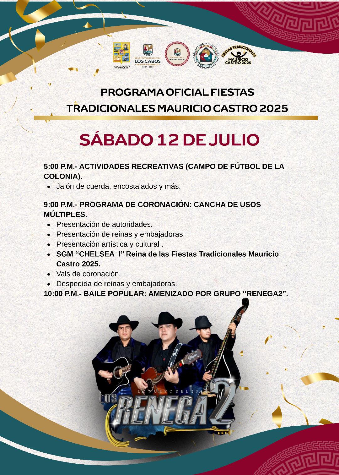 Los Cabos, Baja California Sur.- Habitantes de la colonia Mauricio Castro en San José del Cabo, se preparan celebrar sus Fiestas Tradicionales el próximo sábado 12 de julio, con un programa que iniciará desde las 05:00 de la tarde con actividades recreativas diseñadas para la niñez y familias en general, mismas que se desarrollarán en el campo de fútbol de la colonia.