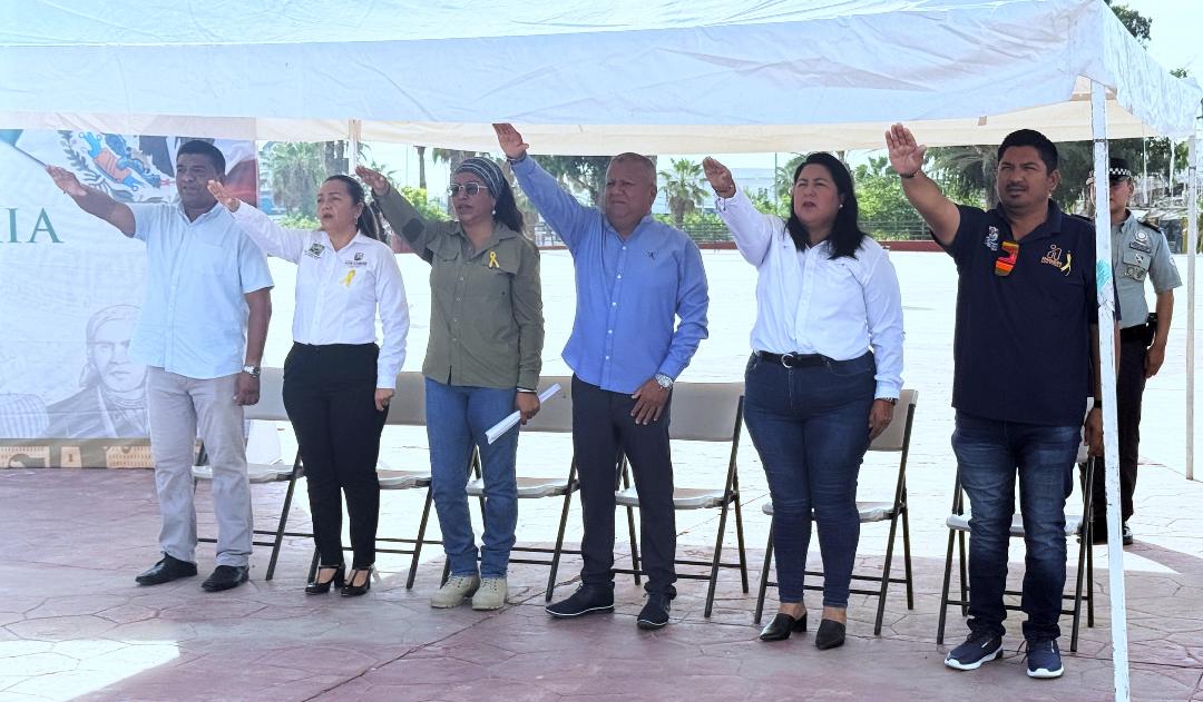 En el marco de esta ceremonia, el alcalde informó que ante las afectaciones registradas en las vías de comunicación por el paso del huracán “Lorena”, se implementan acciones emergentes para el bacheo en tramos federales, así como mantenimiento de vialidades en las diferentes colonias y sectores del municipio.
