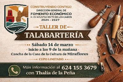 Los Cabos, Baja California Sur.– Con el objetivo de promover y preservar las tradiciones artesanales del municipio, el XV Ayuntamiento de Los Cabos, a través de la Dirección General de Fomento Económico y en coordinación con la Delegación de Miraflores, realizará un taller gratuito de talabartería.