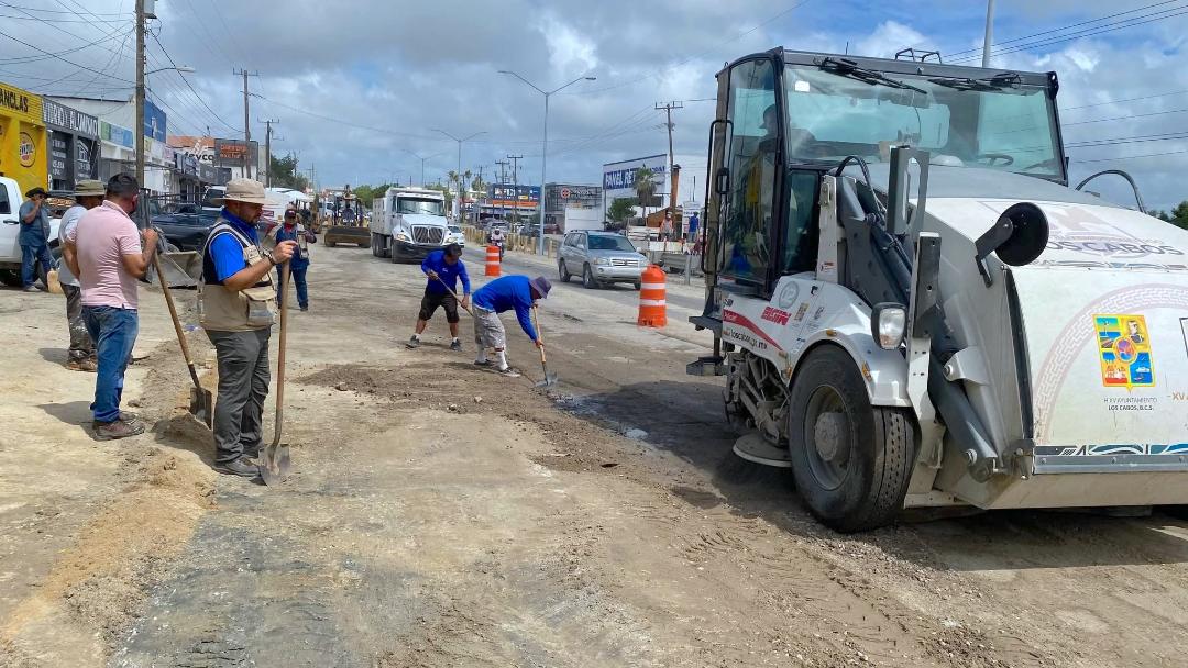 Estas acciones se realizan en cumplimiento a las instrucciones del alcalde Christian Agúndez Gómez, quien reafirmó el compromiso del Ayuntamiento de Los Cabos de mantener las vialidades seguras y transitables para todas y todos los ciudadanos, actuando de manera oportuna ante los efectos del fenómeno meteorológico.