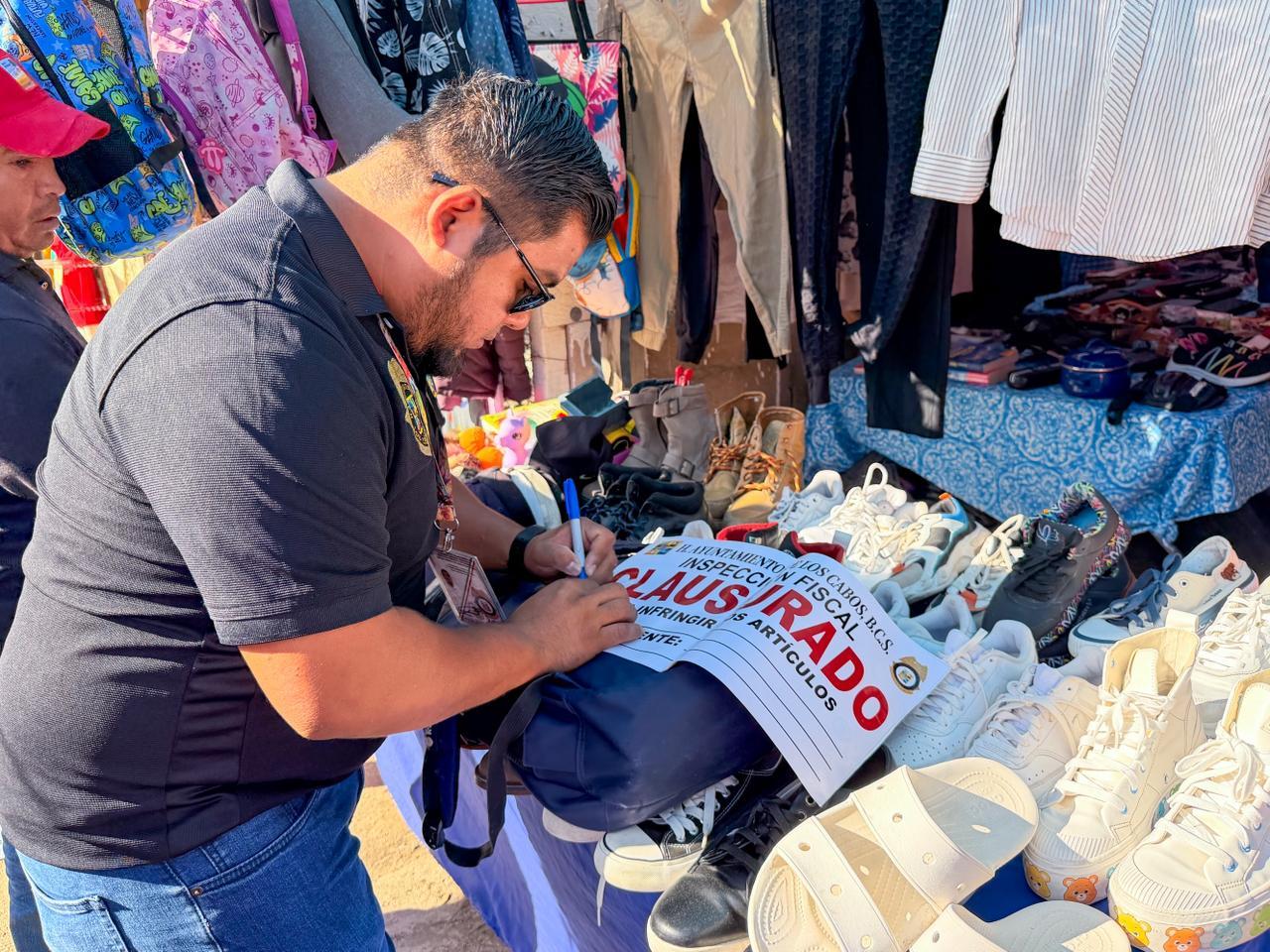 Los Cabos, Baja California Sur.– Con el objetivo de verificar que las y los comerciantes cuenten con los permisos correspondientes para laborar y reforzar el orden en los espacios públicos, el secretario general municipal, Alberto Rentería Santana, encabezó un operativo de supervisión en el tianguis de la colonia Las Palmas, en Cabo San Lucas, en coordinación con diversas dependencias del XV Ayuntamiento.