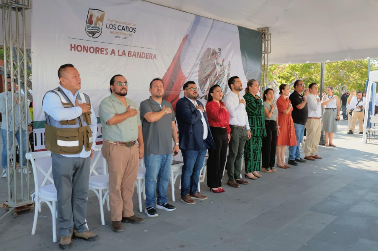 Los Cabos, Baja California Sur.- En el marco de la ceremonia cívica de honores a la bandera, realizada este lunes 20 de octubre en la explanada del Palacio Municipal, el V regidor Jesús Alberto Alvarado Aragón, en representación del alcalde Christian Agúndez Gómez, destacó los avances y retos en materia ambiental, reiterando el compromiso de fortalecer un desarrollo responsable y consciente en el municipio.