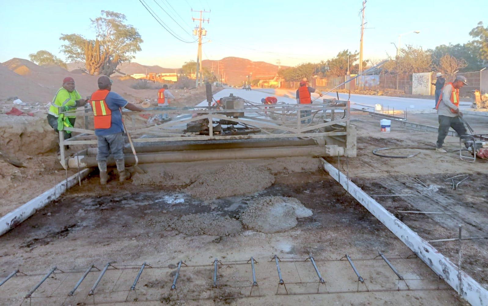 A través de la Dirección General de Obras Públicas y Asentamientos Humanos, dirigida por Christopher Enríquez González, se registra un avance significativo en la pavimentación integral con concreto hidráulico de la calle Profesor Miguel Antonio Olachea Carrillo, ubicada en la colonia Leonardo Gastélum de Cabo San Lucas.