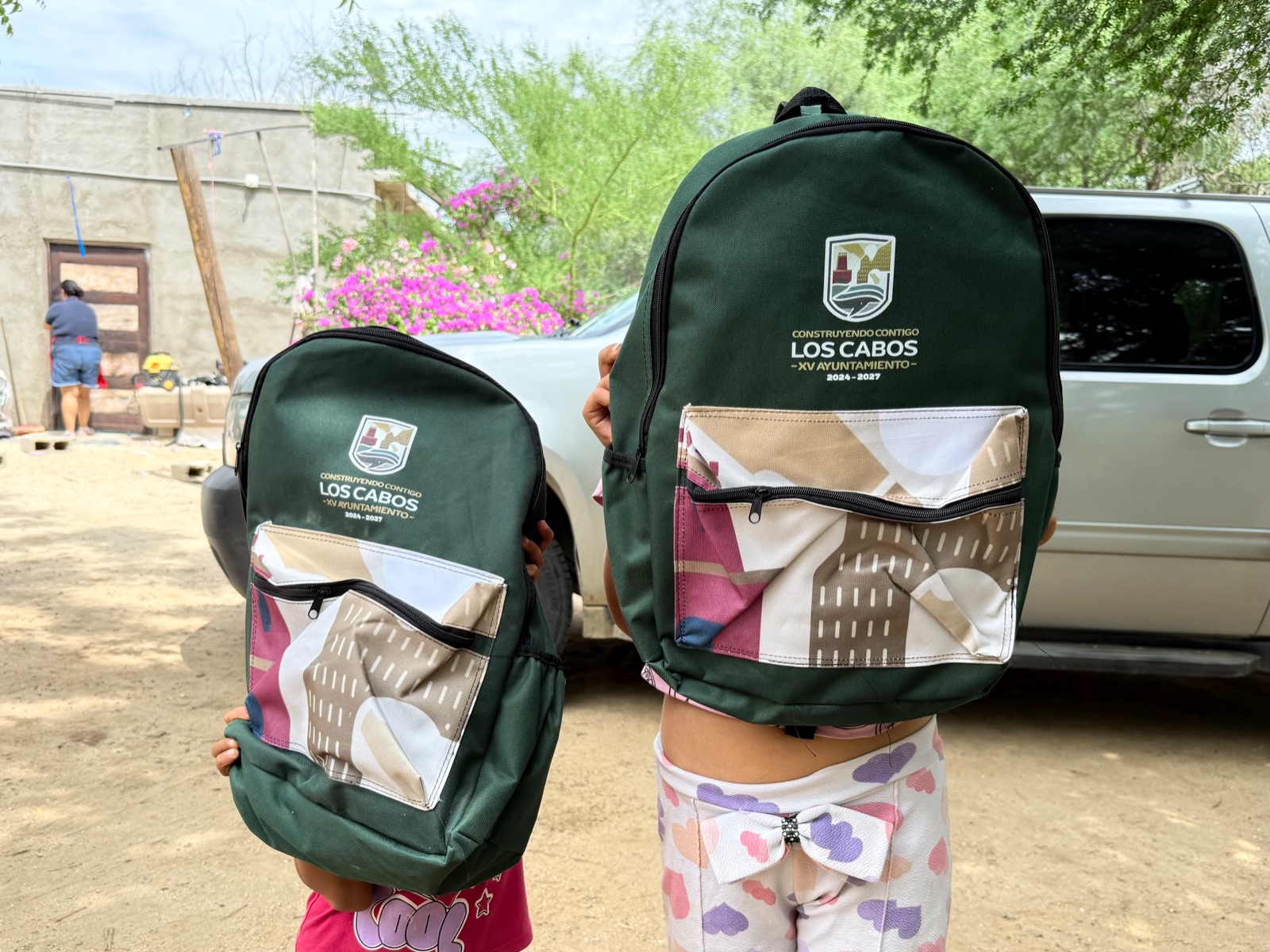 Durante el recorrido se realizaron entregas de apoyos alimenticios y escolares correspondientes al programa “Útiles con Cambio”, impulsado por el XV Ayuntamiento de Los Cabos, con la finalidad de apoyar a las familias y estudiantes.