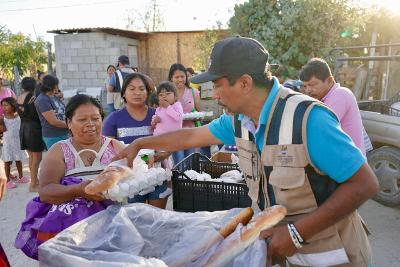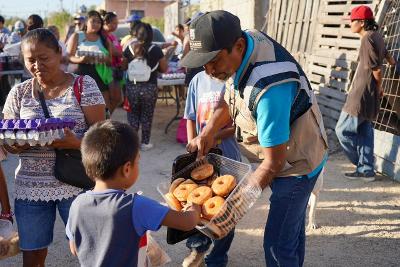 En ese sentido, el coordinador de Subdelegados, Víctor Miranda Urióstegui, informó que durante la jornada se distribuyeron más de 180 carteras de huevo, más de 100 kilogramos de pollo, además de frutas, verduras y legumbres, con el propósito de contribuir a la economía familiar; además se entregó ropa en buen estado como parte del esfuerzo conjunto realizado con la Fundación El Faro.