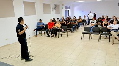 La capacitación se realizó en el aula magna de la Universidad Mundial y contó con la participación de 24 operadores, quienes recibieron instrucción en temas como reanimación cardiopulmonar (RCP), maniobra de Heimlich para desobstrucción de vías respiratorias, atención a quemaduras y manejo de heridas punzocortantes.