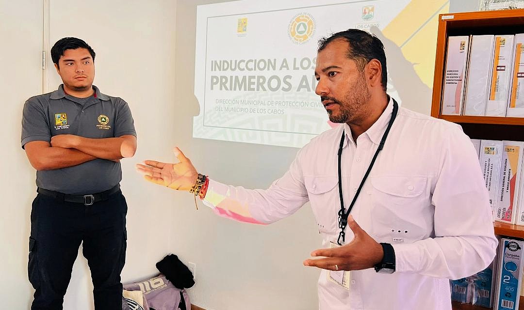 Los Cabos, Baja California Sur.- Con el propósito de fortalecer la respuesta ante situaciones de riesgo durante actividades operativas, a través de la Dirección Municipal de Protección Civil llevó a cabo una capacitación en primeros auxilios dirigida a quienes integran la Dirección Municipal de Gestión y Normatividad Ambiental de la XV Administración.