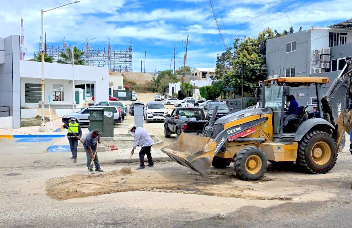 Los Cabos, Baja California Sur.– El XV Ayuntamiento de Los Cabos, a través del programa “Cazabaches”, realizó trabajos de mantenimiento en vialidades de San José del Cabo, atendiendo afectaciones en las colonias San Bernabé, El Chamizal y el puente de acceso al Aeropuerto Internacional de Los Cabos.