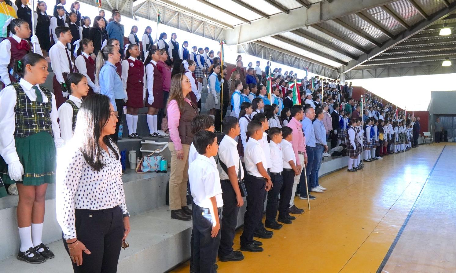 Durante su mensaje, la directora municipal de Educación, Juana Ortiz Cruz, agradeció la confianza de madres y padres de familia por permitir la participación de sus hijas e hijos en este tipo de actividades, destacando que la formación integral de la niñez y juventud es posible gracias al trabajo conjunto entre familias, docentes, directivos y personal educativo. Asimismo, reconoció el entusiasmo y compromiso de las y los estudiantes, quienes con su participación honran y enaltecen a la Bandera Nacional mediante estos actos cívicos.