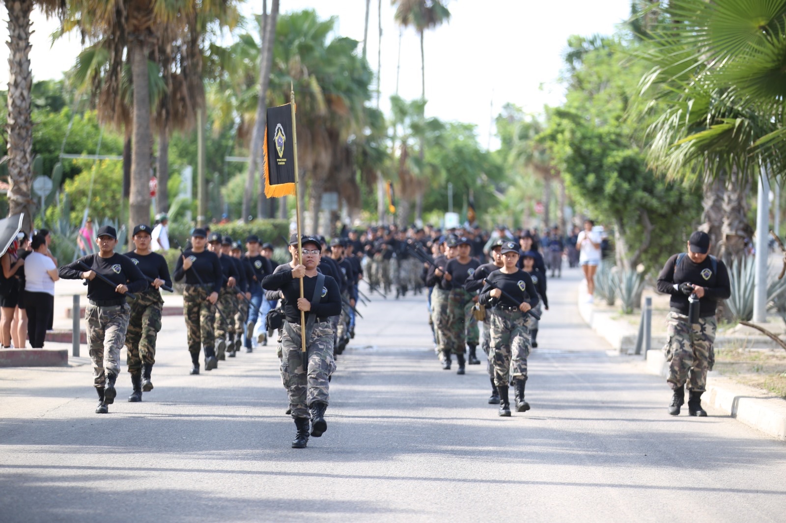 El bulevar Teniente José Antonio Mijares, en el corazón de San José del Cabo, se vistió de orgullo patrio con el paso de los contingentes integrados por la Marina, el Sector Naval, la Guardia Nacional, el Ejército Mexicano, Seguridad Pública Municipal, instituciones educativas y organizaciones sociales. El ritmo marcial de las bandas de guerra y la participación ciudadana dieron realce a un evento lleno de identidad y tradición.