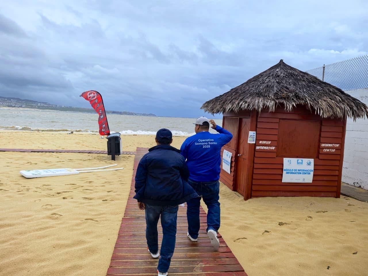Los Cabos, Baja California Sur.- En seguimiento a las indicaciones del presidente municipal de Los Cabos, Christian Agúndez Gómez y del coordinador municipal de la Zona Federal Marítimo Terrestre (Zofemat), Rafael Álvarez Munguía, personal operativo de dicha dependencia llevó a cabo recorridos de supervisión en las principales playas del destino, a fin de garantizar la seguridad de visitantes y habitantes durante las condiciones adversas derivadas del huracán “Lorena”.