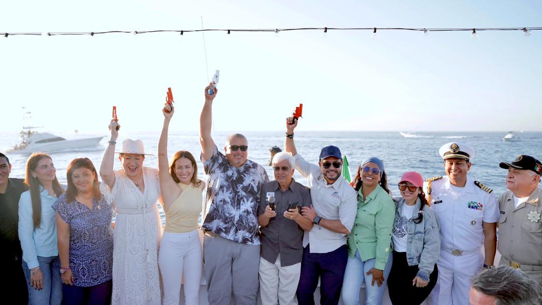 Los Cabos, Baja California Sur.- Con el tradicional disparo de salida, el alcalde Christian Agúndez Gómez encabezó el inicio de la 45ª edición del torneo de pesca deportiva “Bisbee’s Black and Blue”, realizado la mañana de este miércoles, refrendando el compromiso del XV Ayuntamiento de Los Cabos de continuar consolidando al municipio como líder nacional e internacional en pesca deportiva y turismo de alto nivel.