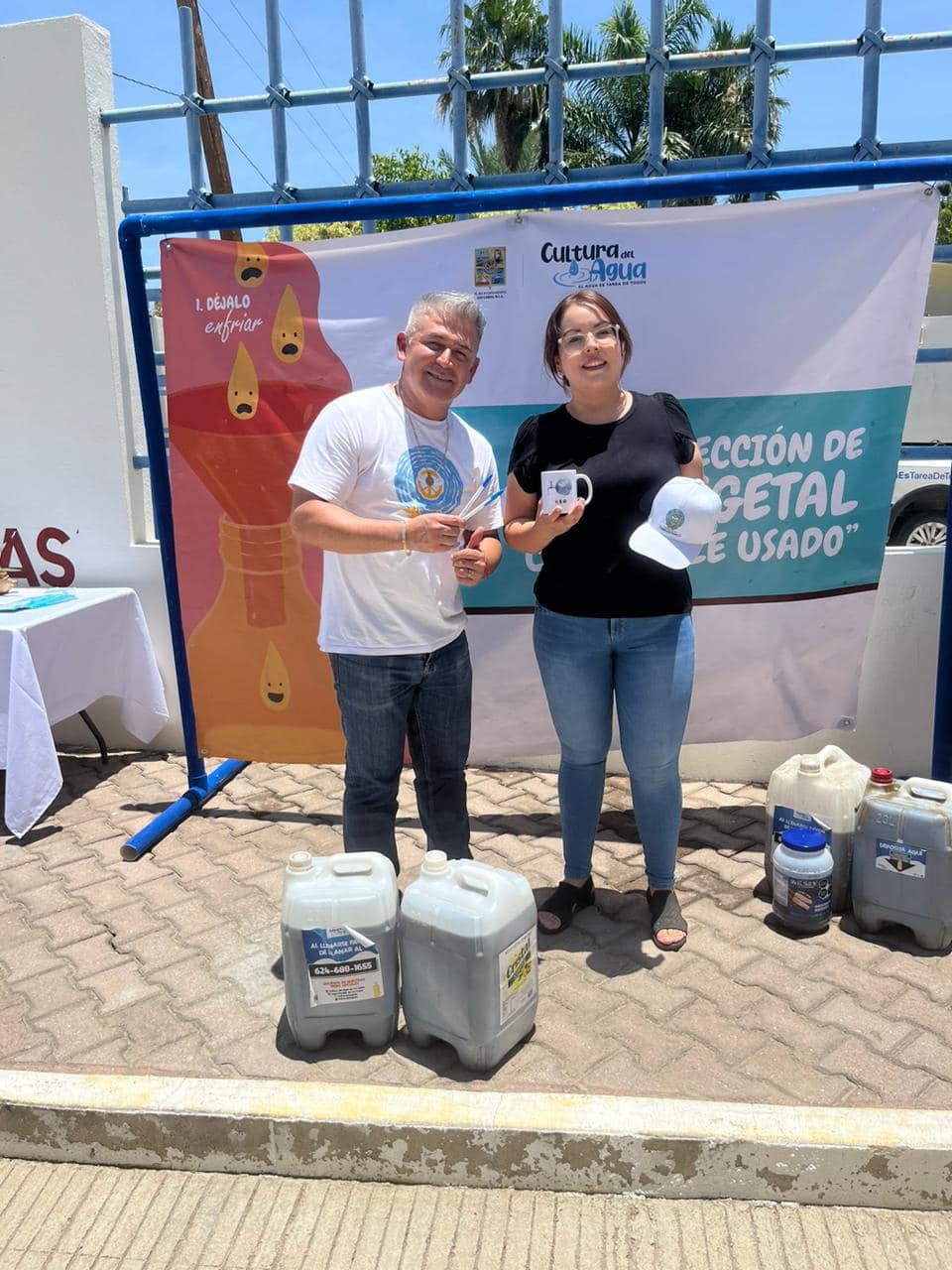 Los Cabos, B.C.S., 03 de julio. – Habitantes de La Ribera, Santiago, Miraflores, San José del Cabo y Cabo San Lucas, acudieron con sus botellas a los puntos de recolección que habilitó el equipo de la Dirección de Cultura del Agua de OOMSAPAS Los Cabos para depositar el «aceite vegetal comestible usado”, logrando recolectar a la fecha 1 mil 298 litros.
