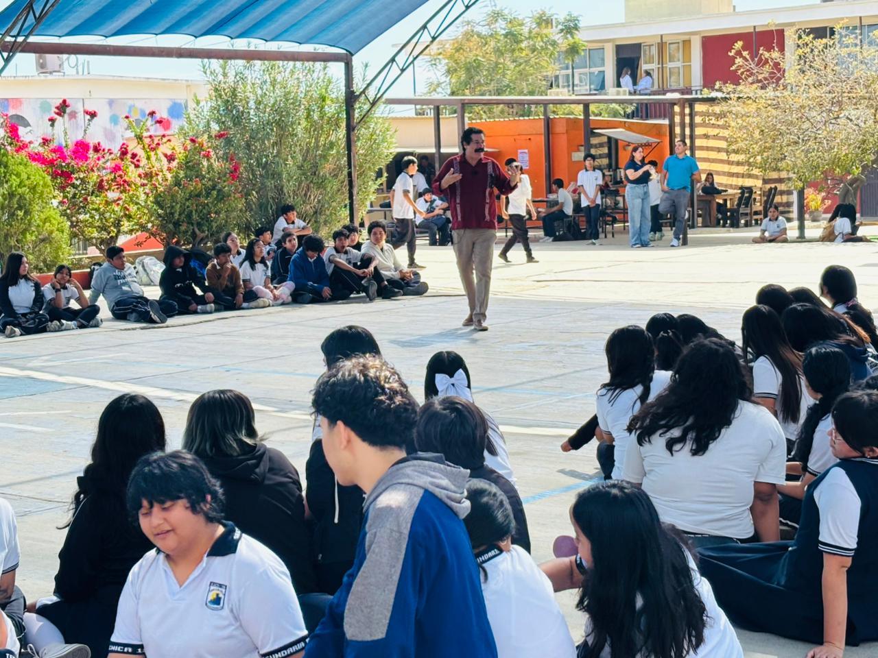 Como parte de las actividades realizadas en Cabo San Lucas, se contó con la destacada participación del actor sudcaliforniano Enoc Leaño, quien impartió un taller de actuación en la Escuela Secundaria Técnica No. 18, dirigido a cerca de 100 estudiantes. Durante la sesión, compartió herramientas básicas de interpretación, exploró las habilidades artísticas de las y los jóvenes y respondió inquietudes relacionadas con la formación y el desarrollo profesional en el ámbito actoral.