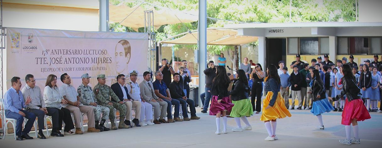 Tras los honores a la bandera, a cargo de la escolta y banda de guerra de la Dirección General de Seguridad Pública, Policía Preventiva y Tránsito Municipal, Rentería Santana destacó el legado del teniente Mijares, cuya valentía y entrega en defensa de la soberanía nacional continúa siendo un símbolo de identidad y orgullo para las y los sudcalifornianos.