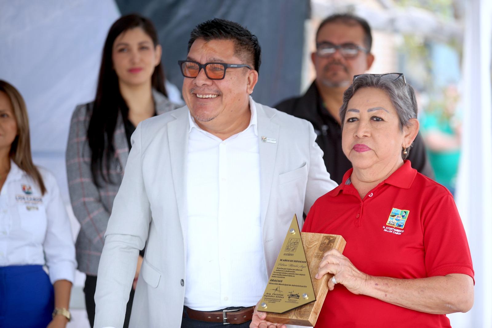 En el marco de la ceremonia conmemorativa, se realizó la entrega de un reconocimiento por sus 18 años de servicio en la Administración Pública a Patricia Morales Ángel, además de la presentación artística de la joven Zoe Licona y Mario Lozano, alumna y profesor del Instituto de la Cultura y las Artes de Los Cabos (ICA).