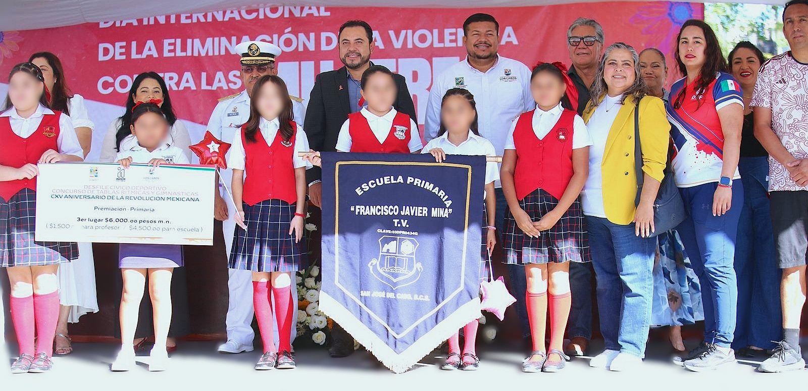 Los Cabos, Baja California Sur.- El XV Ayuntamiento de Los Cabos, a través de la Dirección General de Desarrollo Social y la Dirección Municipal de Educación, en coordinación con el Instituto de las Mujeres del Municipio de Los Cabos y el Sector Naval de Cabo San Lucas, llevó a cabo una ceremonia cívica para conmemorar tres efemérides de gran relevancia: el Día Internacional de la Eliminación de la Violencia contra las Mujeres, el 149° aniversario del natalicio de Rosaura Zapata Cano y el bicentenario de la consolidación de la Independencia en la Mar.