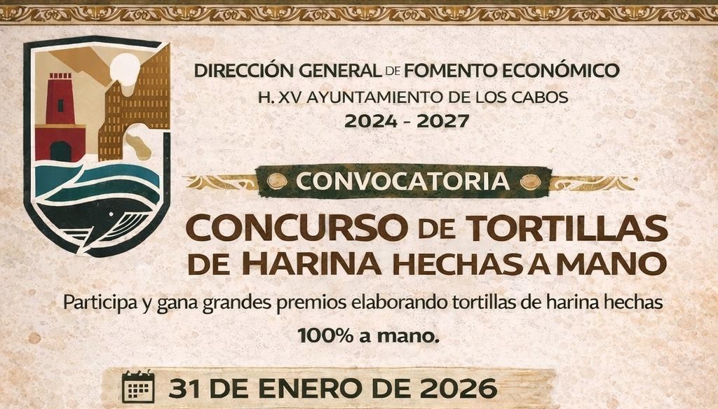 Los Cabos, Baja California Sur.– Con el objetivo de preservar las tradiciones gastronómicas de la región, impulsar el emprendimiento local y fortalecer la identidad cultural de las comunidades rurales, la Dirección General de Fomento Económico del XV Ayuntamiento de Los Cabos, convoca a la ciudadanía a participar en el Concurso de Elaboración de Tortillas de Harina Hechas a Mano.