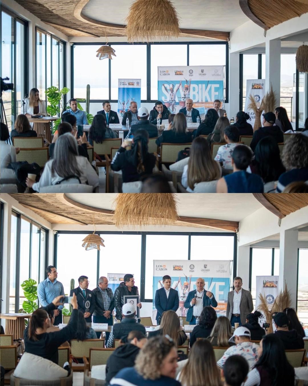 Los Cabos, Baja California Sur.- Por instrucción del presidente municipal, arquitecto Christian Agúndez Gómez, la Dirección Municipal de Relaciones Públicas estuvo presente en la conferencia de prensa organizada por Cactus Tours, con motivo del lanzamiento de Skybike, la bicicleta aérea más larga del mundo, que fue oficialmente reconocida por los Guinness World Records en el mismo evento.