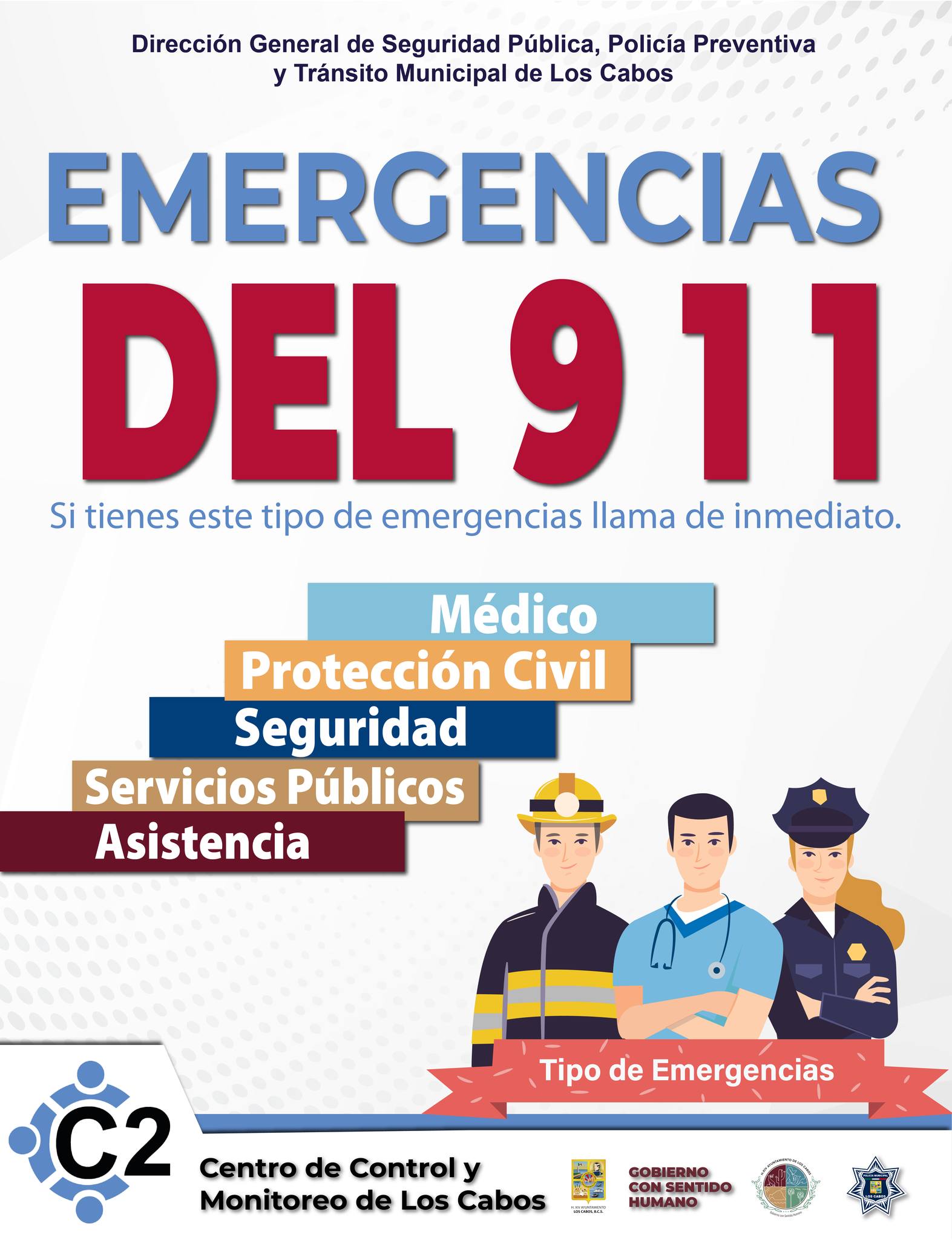 El número de emergencias atiende situaciones de Protección Civil como: fugas de gas y desastres naturales; de Seguridad Pública, como: personas que cometan delitos o faltas administrativas, reportes de fallas de semáforos y apoyo vial ante accidentes automovilísticos; y de Bomberos: accidentes, choques e incendios, así como de la Cruz Roja: emergencias médicas.
