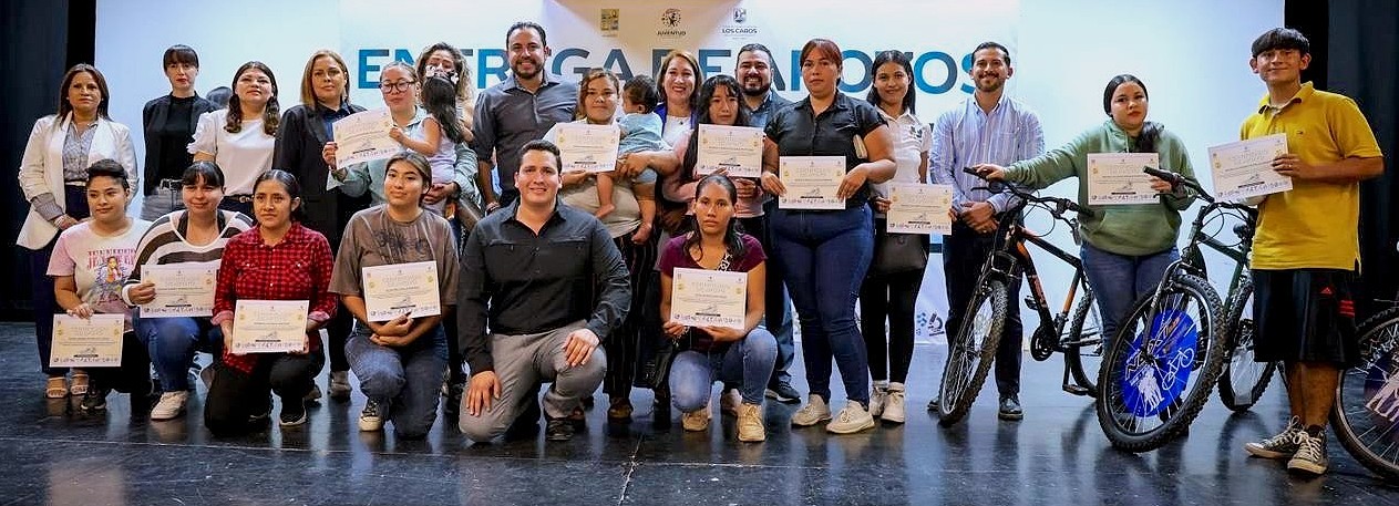 Los Cabos, Baja California Sur.- El XV Ayuntamiento de Los Cabos, a través del Instituto de la Juventud (INJUVE), realizó la entrega de apoyos correspondientes a los programas “Impulso Emprendedor” y “Apoyo Madre Joven”, además de otorgar tres bicicletas a estudiantes destacados. Estas iniciativas buscan fortalecer el talento, la creatividad y el desarrollo integral de las juventudes del municipio, brindándoles herramientas reales para impulsar sus proyectos educativos, personales y productivos.