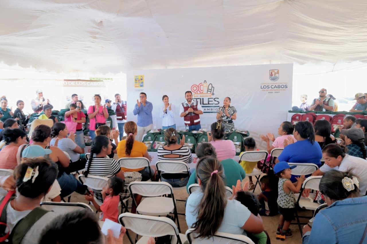 Las entregas se realizaron en Las Ballenas segunda etapa, el vado de Santa Rosa y Vista Hermosa, en San José del Cabo, así como en Las Palmas y Gastélum en Cabo San Lucas, bajo la coordinación de la Dirección de Atención Ciudadana y con la presencia de autoridades municipales, entre ellas la síndica Nélida Alfaro Rosas, el secretario general Alberto Rentería Santana, el titular de Desarrollo Social Carlos Castro Ceseña y el III regidor Andrés Liceaga Gómez.