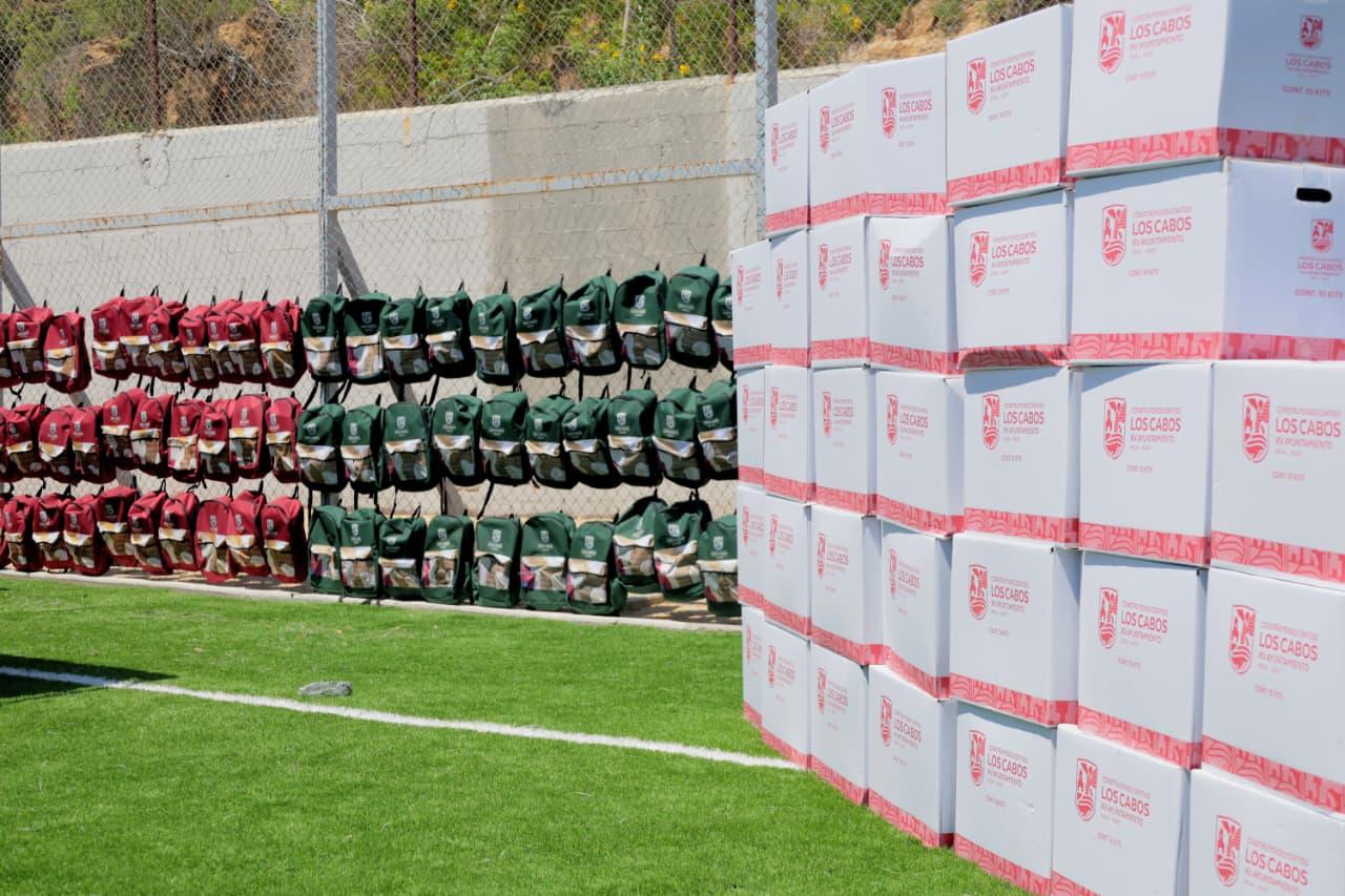 Los Cabos, Baja California Sur.– Como parte de los compromisos de impulso a la educación y apoyo a la economía familiar, el presidente municipal de Los Cabos, Christian Agúndez Gómez, acompañado de su esposa y presidenta honoraria del Sistema Municipal DIF, Sol Delgado Moreno, encabezó la entrega de paquetes de útiles escolares en distintas colonias de San José del Cabo, sumando más de 10 mil mochilas, incluyendo las que se entregaron a primera hora de este miércoles 17 de septiembre en la Delegación Muncipal de Cabo San Lucas.
