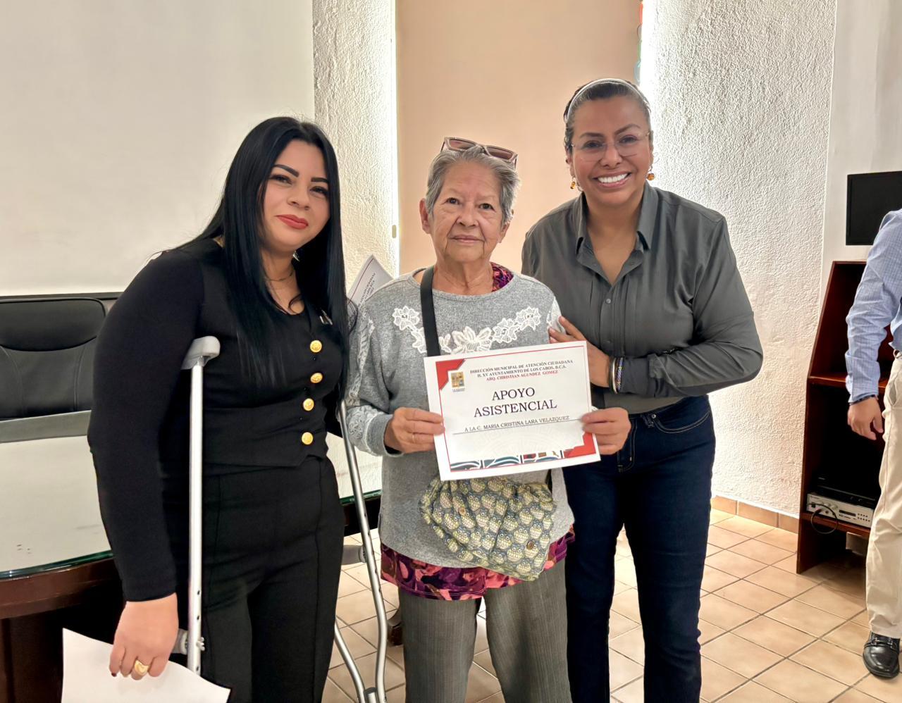 Los Cabos, Baja California Sur.– Como parte del compromiso de mantener una atención directa y cercana con la ciudadanía, la delegada de Cabo San Lucas, Karina de la O Uribe, encabezó la entrega de 35 apoyos asistenciales gestionados a través de la Coordinación de Atención Ciudadana, a cargo de Dulce Martínez Cázares.