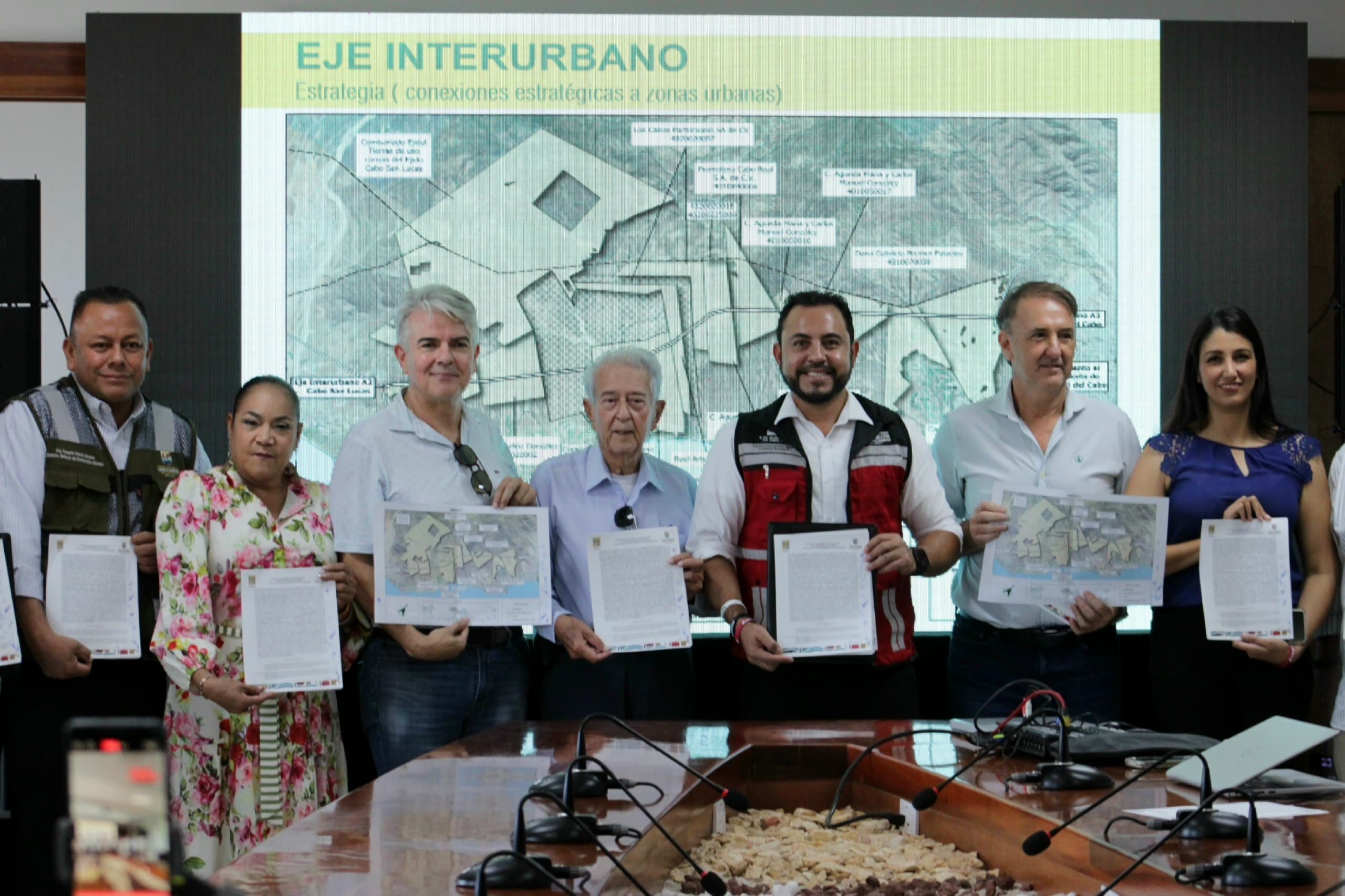 El eje interurbano se considera una vialidad de acceso directo a los dos centros de población, Cabo San Lucas y San José del Cabo, complementando la función actual de la carretera Transpeninsular como vialidad rápida entre los dos polos de desarrollo y puntos intermedios, al respecto el Alcalde Christian Agúndez expuso que para la firma de la promesa de donación del Eje Interurbano, son 15 propietarios identificados, algunos desarrolladores, el Ejido San Lucas y que llevará a poder aprovechar en algún momento esta vía que será una de las soluciones más fuertes que se tendrá en el municipio de Los Cabos en materia de movilidad.
