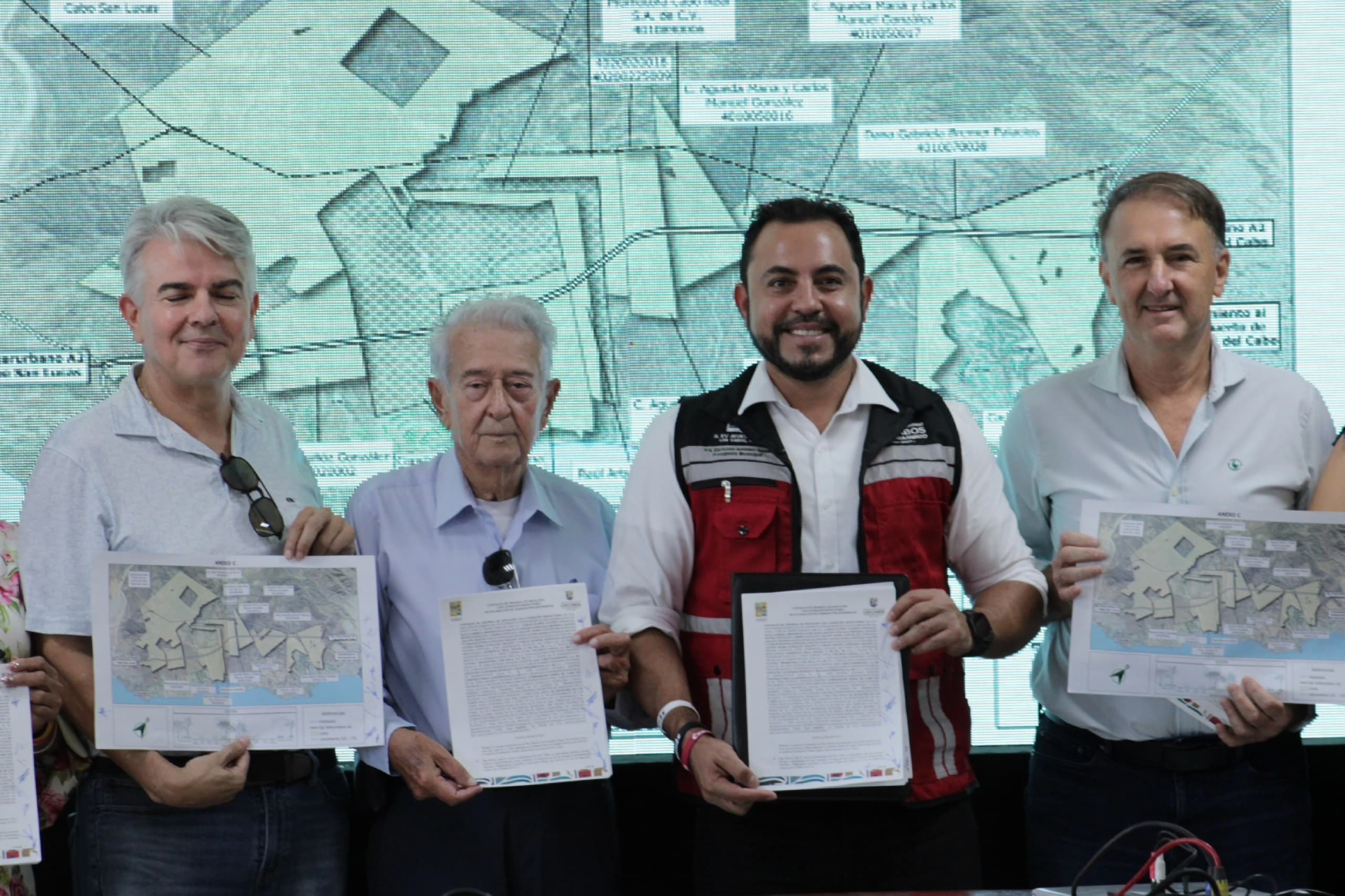 Los Cabos, Baja California Sur.- Con la firma del contrato de promesa de donación de terreno por donde pasará el Eje Interurbano se ha dado un gran paso en materia de desarrollo urbano y movilidad, así lo expresó el presidente municipal Christian Agúndez, al finalizar la reunión donde las partes involucraras plasmaron su firma.