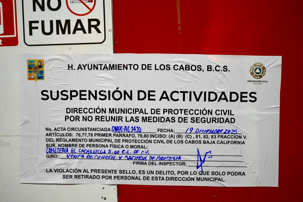 Rentería Santana precisó que esta decisión también busca evitar incendios en general en viviendas de esta localidad; en este sentido se emitió el acta circunstanciada DMPC-AC-1410, de acuerdo los artículos: 76,77,78 primer párrafo, 79,80 inciso: (a) (b) (c), 81, 82, 83 fracción del Reglamento Municipal de Protección Civil de Los Cabos Baja California Sur, para realizar la clausura la cohetería El Cachanilla.