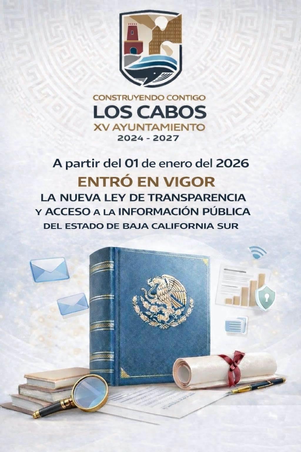 - A partir del 01 de enero de 2026, entró en vigor la nueva Ley de Transparencia y Acceso a la Información Pública del Estado de Baja California Sur