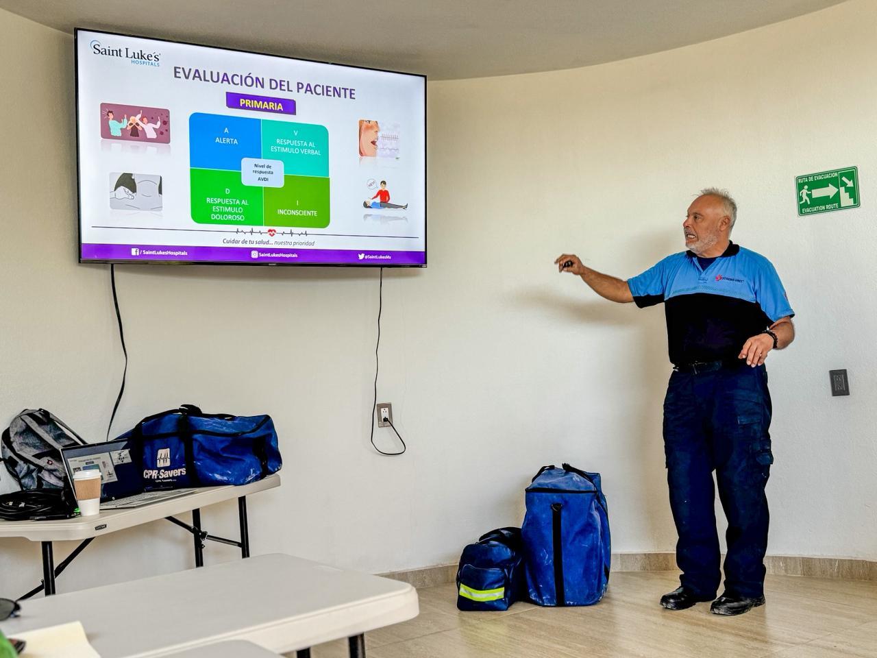 Los Cabos, Baja California Sur.- Con el objetivo de fortalecer la preparación y profesionalización del personal operativo, guardavidas de la Zona Federal Marítimo Terrestre (ZOFEMAT) Los Cabos participaron en un curso de capacitación en primeros auxilios, impartido por paramédicos de Saint Luke’s.