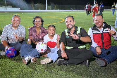 El director general de Desarrollo Social, Carlos Castro Ceseña, detalló que el complejo cuenta con una cancha de fútbol 11 con 10,521 metros cuadrados de pasto sintético, ocho divisiones infantiles y una pista de tartán de 3,400 metros cuadrados con seis carriles para atletismo.