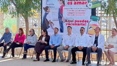 Los Cabos, Baja California Sur. –Este sábado 25 de abril, dio inicio en el municipio de Los Cabos la Semana Nacional de Vacunación bajo el lema “Vacunar es amar”, en un evento que se realizó en la escuela primaria Leonardo Gastélum Villalobos, en Cabo San Lucas.