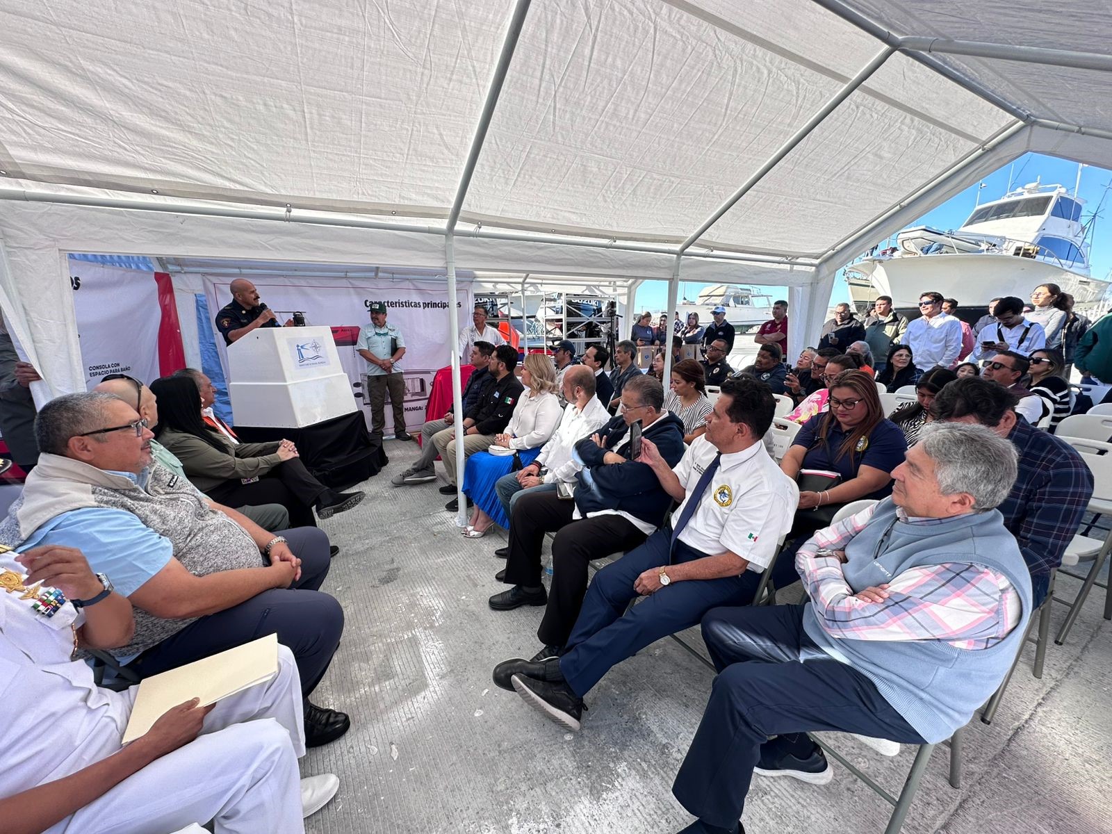 En la ceremonia de inicio de la construcción se contó con la presencia del Director del FONMAR BCS, Martín Inzunza Tamayo, en representación del Gobernador de Baja California Sur, Prof. Víctor Manuel Castro Cosío; También compartieron el momento representantes de la Secretaría de Marina Armada de México, del XV. Ayuntamiento de Los Cabos y del Ayuntamiento de La Paz.