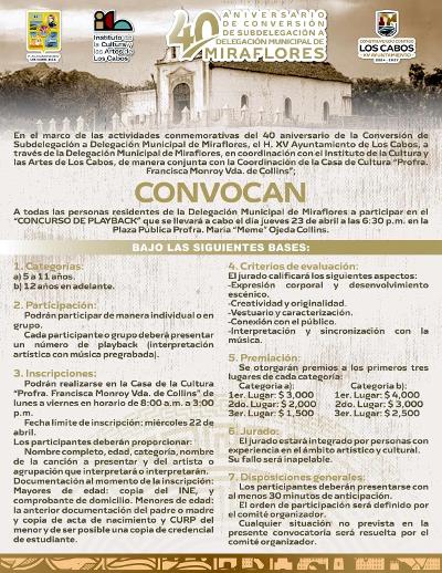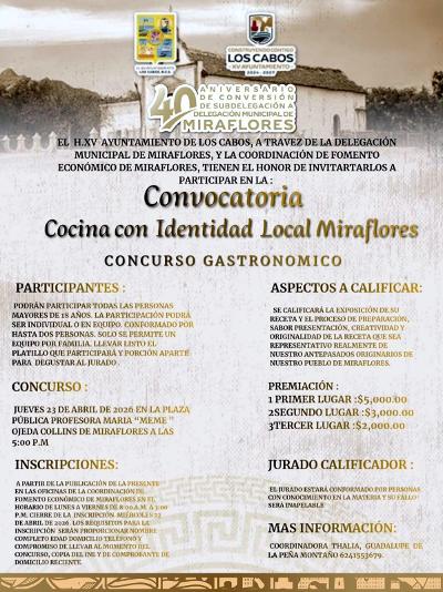 Para mayores informes sobre convocatorias y actividades, la ciudadanía puede consultar las páginas oficiales de Facebook Delegación Municipal de Miraflores y Ayuntamiento de Los Cabos.
