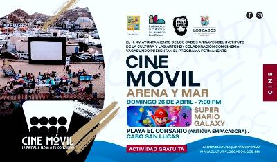 Los Cabos, Baja California Sur.– El XV Ayuntamiento de Los Cabos, a través del Instituto de la Cultura y las Artes (ICA) Los Cabos, invitó a la ciudadanía a disfrutar una nueva función del programa “Cine Móvil: Arena y Mar”, que se realizará el próximo 26 de abril en Playa El Corsario (La Empacadora), en Cabo San Lucas.