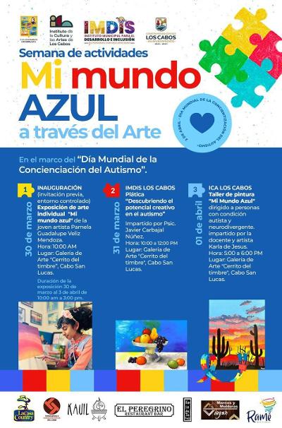 Los Cabos, Baja California Sur.– El XV Ayuntamiento de Los Cabos, a través del Instituto de la Cultura y las Artes (ICA) y el Instituto Municipal para el Desarrollo e Inclusión de Personas con Discapacidad (IMDIS), invita a la ciudadanía a participar en la semana de actividades “Mi mundo Azul a través del Arte”, en el marco del Día Mundial de la Concienciación del Autismo.