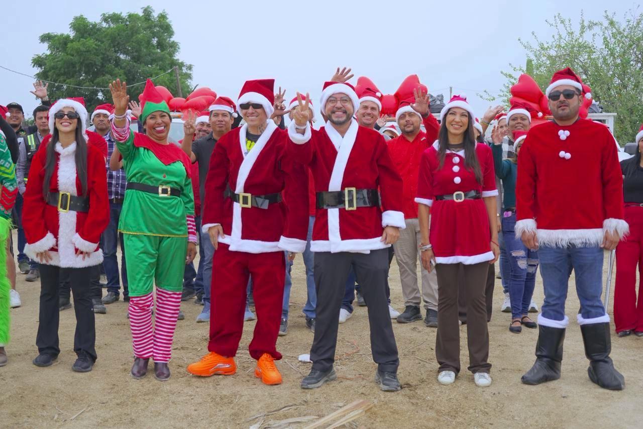 Los Cabos, Baja California Sur.– Porque los eventos con causa tienen la finalidad de llevar bienestar y felicidad, a unas horas de finalizar el 2025 el presidente municipal de Los Cabos Christian Agúndez Gómez, acompañado de su esposa, presidenta honoraria del Sistema para el Desarrollo Integral de la Familia (DIF), Sol Delgado Moreno y el reconocido artista, Alemán llevaron juguetes a diversas colonias de Cabo San Lucas