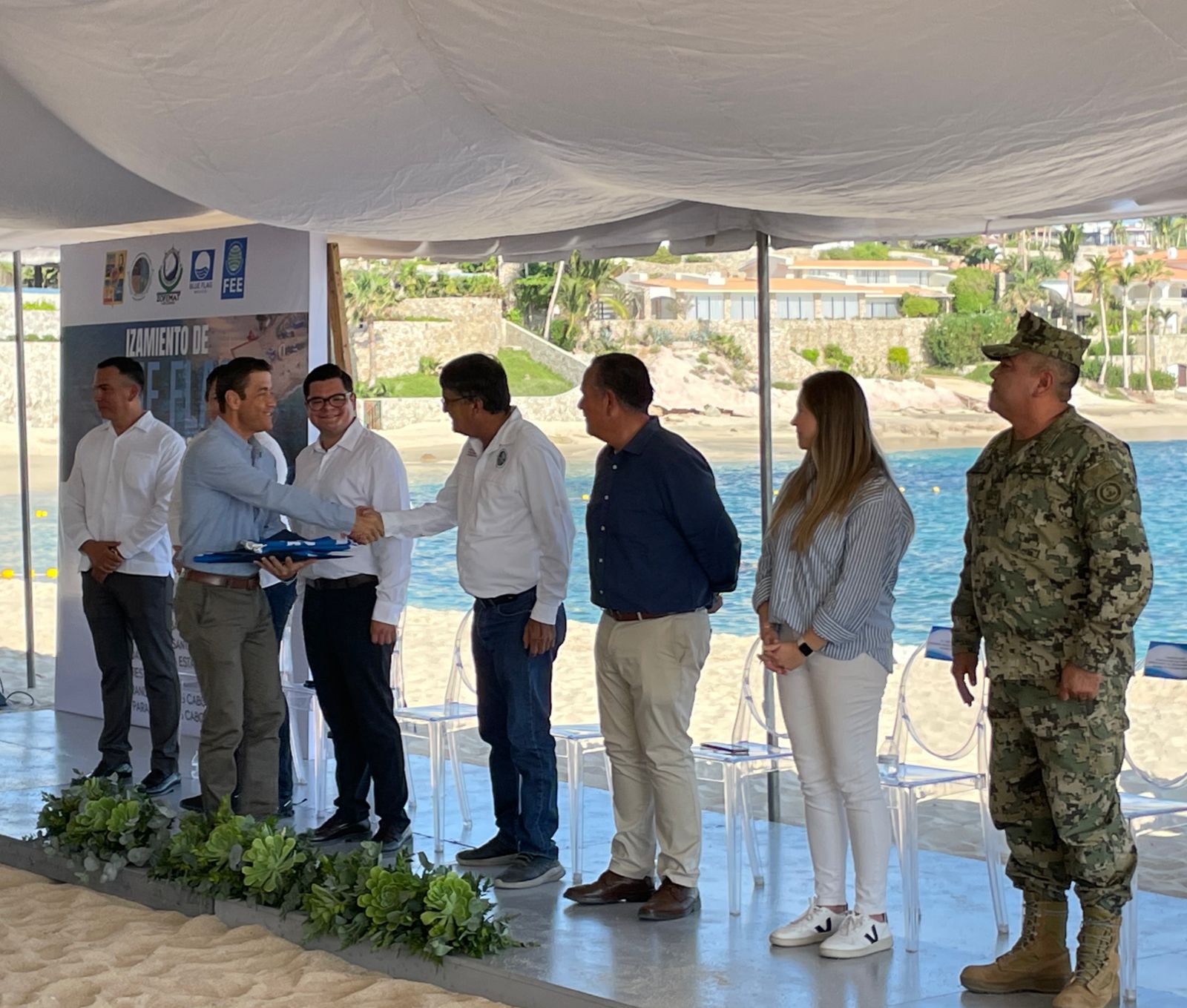 Los Cabos, B.C.S. 22 septiembre 2023.-  Este viernes 22 de septiembre el alcalde de Los Cabos Oscar Leggs Castro, presidió el acto de izamiento de bandera y entrega de certificación “Blue Flag” correspondiente a la temporada 2023-2024, acto que se desarrolló en la playa pública Palmilla en San José del Cabo y a su vez ratifica a Los Cabos como el destino con más playas de excelencia y sustentabilidad no solo en México, sino también en Latinoamérica.