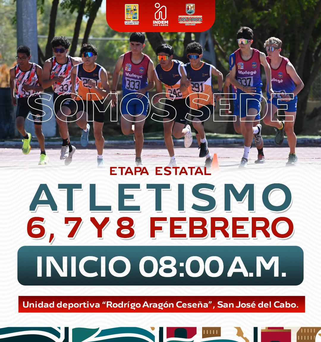 Los Cabos, Baja California Sur.– El Instituto del Deporte del Municipio de Los Cabos (INDEM) dio a conocer que todo se encuentra listo para la realización de la Etapa Estatal de Atletismo, la cual se desarrollará los días 6, 7 y 8 de febrero en la Unidad Deportiva “Rodrigo Aragón Ceseña” en San José del Cabo, consolidando a este municipio como anfitrión de importantes encuentros deportivos a nivel estatal.