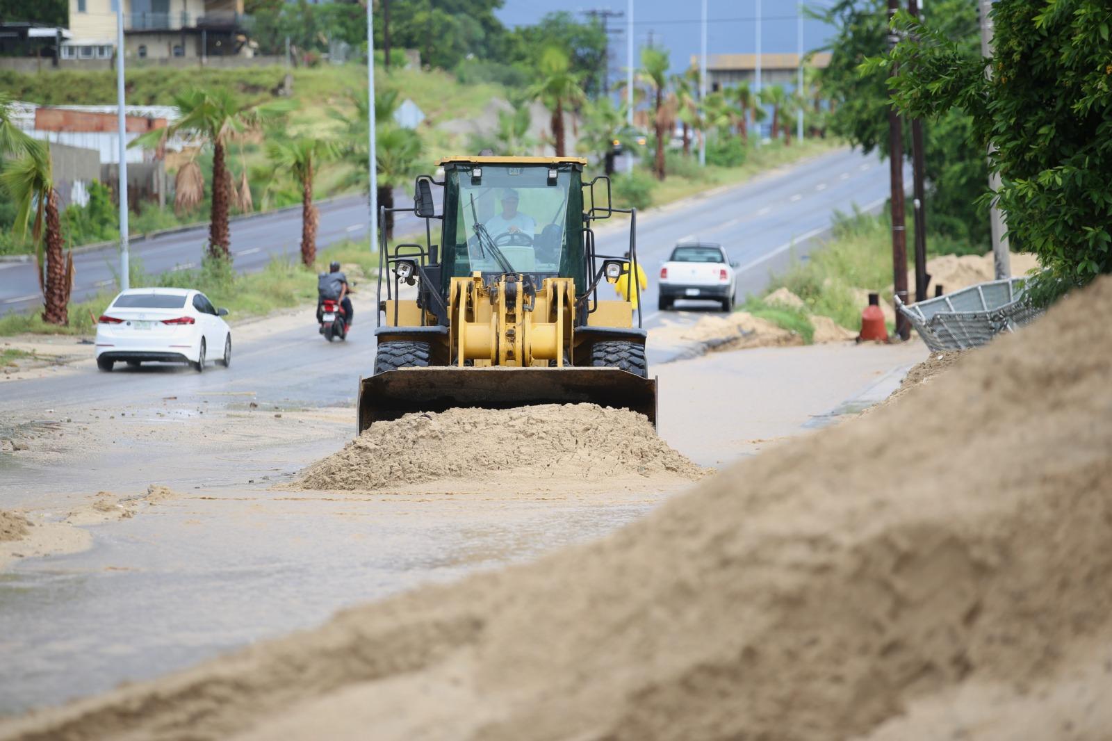 Los Cabos, Baja California Sur.– En atención a las indicaciones del alcalde Christian Agúndez Gómez, el XV Ayuntamiento de Los Cabos, a través de la Dirección General de Servicios Públicos, mantiene un operativo permanente de limpieza y desazolve en distintos puntos del municipio por las lluvias registradas por el paso del huracán “Priscilla”.