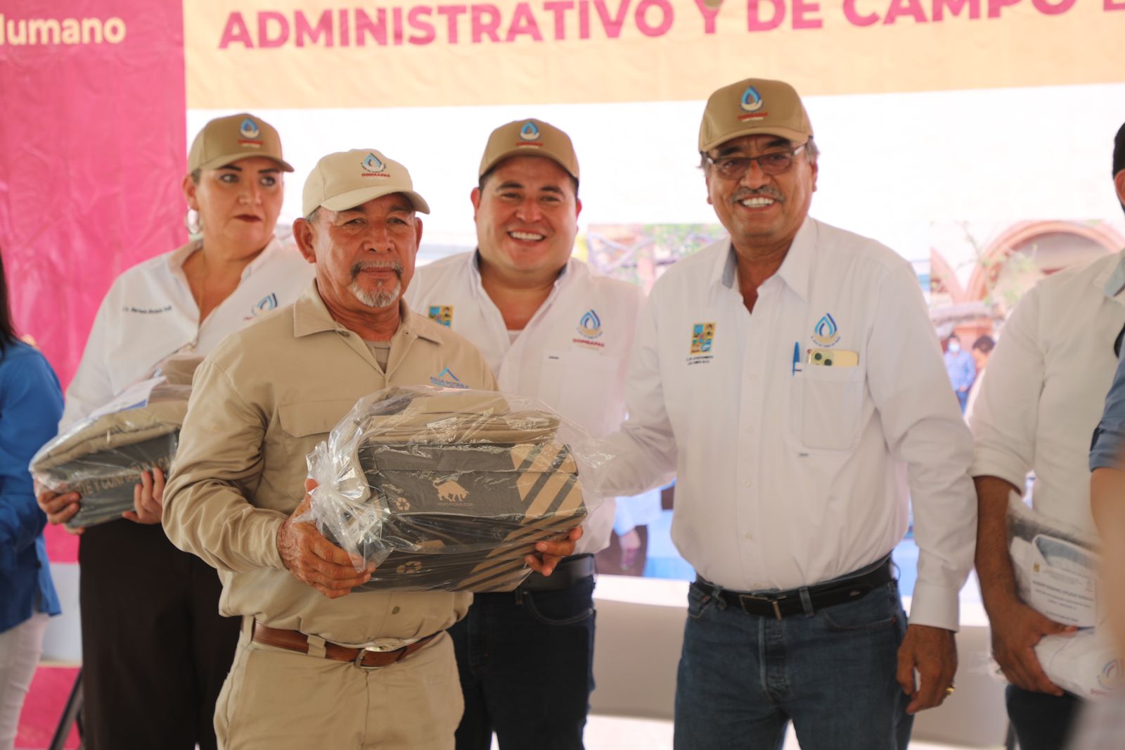 “Estamos sentando las bases para resolver esta problemática y aumentar la disponibilidad de agua. Estoy seguro de que, con el esfuerzo de este equipo, lograremos mejorar la situación en Cabo San Lucas y reducir el problema de racionamiento en San José del Cabo. Con esto, reitero nuestro compromiso con ustedes, que es el poder dotarles de los uniformes, ya que es la manera de como identificarlos como institución, puesto que somos un Organismo muy dinámico que cumple con la misión principal en el municipio de Los Cabos, de dotar de agua potable, de dotar del servicio de alcantarillado a los hogares de Los Cabos, y en esa tarea titánica que nos corresponde a nosotros y a ustedes, se les brindan las herramientas”, pronunció el director general de Agua Potable.